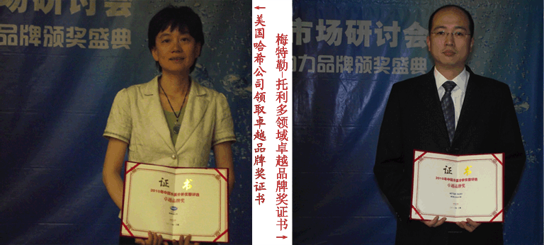 為了促進中國水質分析儀器技術和設備的發展,增加產業動力,充分發揮會議的驅動和鼓勵作用,本次研討會主辦方根據2010年中國在線水質分析儀器市場研究報告、2010年中國水質分析儀器調查報告中的數據以及用戶意見綜合評定設立了“中國水質分析儀器卓越品牌獎”,將2010年度該獎項分別授予美國哈希公司和梅特勒-托利多公司。