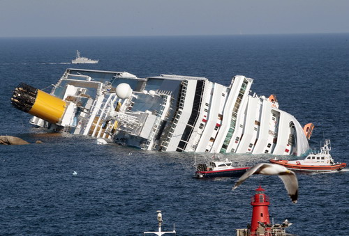 意大利豪華游輪“協和”號觸礁傾覆(圖)照片,猶如“泰坦尼克”號再現