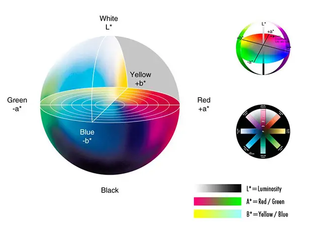 Lab色空間是人類視覺的顏色空間,是一種與設備無光的色彩模式。它不僅包含了RGB、CMYK的所有色域,還能表現他們不能表現的色彩。人的肉眼能感知的色彩,都能通過Lab模型表現出來。