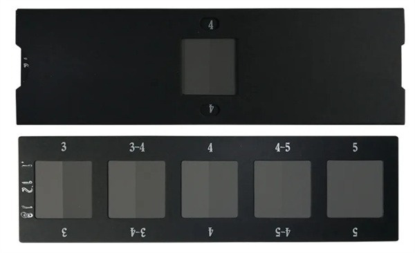 在紡織品色牢度測試中,灰色樣卡通常用作參考材料。這些灰色樣卡由5對無光的灰色卡片或布片材組成,通常分為5個牢度分級,即我們常說的5,4,3,2,1,在每兩個等級中再補充半級,即4-5,3-4,2-3,1-2,合稱五級九檔灰卡,每對的第一組均是中性灰色,其中5級的第二組成相一致,其他各對的第二組成在色澤上依次變淺,色差逐步增大。
