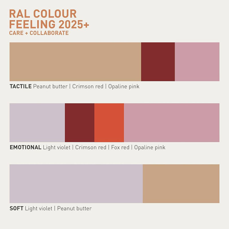 勞爾RAL色彩趨勢2025+以關愛+協作為主題,適用于當代設計和建筑,在建筑、工業、產品、貿易和工藝等領域。一起來感受這些迷人的色彩!