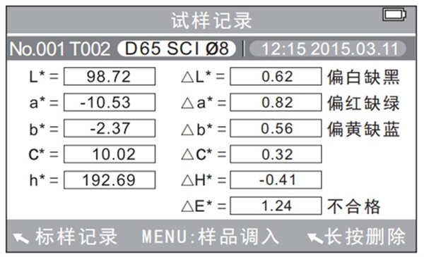 2. 對于特殊效果顏色(如金屬色、珍珠色等),可能無法準確測量其色差。