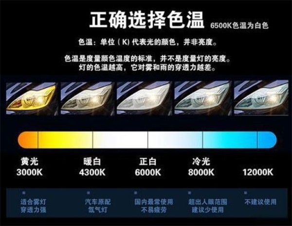 色溫與車燈穿透力有一定的關(guān)系,車燈的穿透性越強(qiáng)也就是說,在雨天和霧天的環(huán)境中,它可以使駕駛員看得更遠(yuǎn),更清晰,避免由于視線不佳而造成危險(xiǎn),并且還可以讓對面的行人或道路上的汽車提早發(fā)現(xiàn),以防止發(fā)生事故。什么樣的壓顏色光穿透力強(qiáng)?這取決于其色溫。