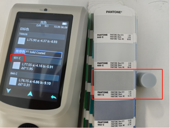 短短瞬間,CR9 憑借其??核心智能算法??捕獲物體色彩信息,快速檢索??內(nèi)置海量色卡數(shù)據(jù)庫(kù)??,基于最核心的 ??Lab 值?? 和 ??ΔE 色差值??進(jìn)行綜合評(píng)判,并立即在 ??3.5inch?? 真彩屏上清晰顯示最接近的標(biāo)準(zhǔn)色卡號(hào)。