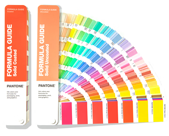 潘通色卡體系中最著名的當屬"潘通配色系統"(PANTONE MATCHING SYSTEM,簡稱PMS),這是選擇、確定、配對和控制油墨色彩方面的權威性國際參照標準。該系統包含的"潘通配方指南"由大量每頁約62吋(155厘米)的薄卡紙組成,單面印有一系列相關顏色、彩通顏色編號及其混色配方,裝訂成一本長條形可翻開成扇形的小冊子。