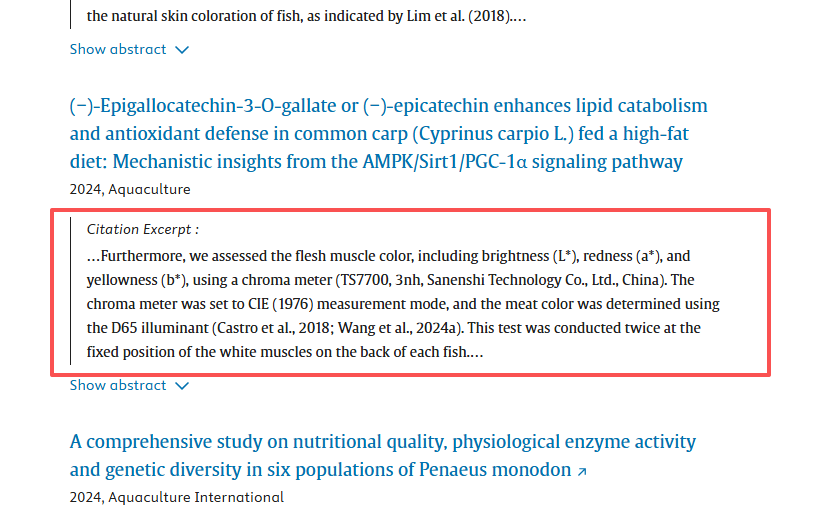 而在這場(chǎng)"精準(zhǔn)診斷"中,一個(gè)"科學(xué)工具"功不可沒(méi)——三恩時(shí)TS7700分光測(cè)色儀。可能有人會(huì)問(wèn):研究肉質(zhì)為什么要測(cè)顏色?其實(shí),魚的顏色與品質(zhì)密切相關(guān)。比如黃河鯉的黃色,主要來(lái)自類胡蘿卜素,這種物質(zhì)不僅影響外觀,還與肉質(zhì)風(fēng)味、營(yíng)養(yǎng)價(jià)值直接相關(guān)。但人眼判斷顏色主觀且不準(zhǔn),而分光測(cè)色儀能將顏色轉(zhuǎn)化為精確的數(shù)字?jǐn)?shù)據(jù),讓野生與養(yǎng)殖鯉魚的色澤差異"看得見(jiàn)、算得清",為研究提供了客觀依據(jù)。