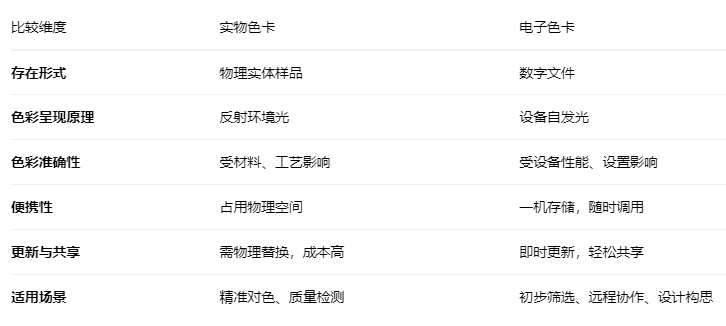 以下表格清晰展示了兩種色卡的主要特性對比: