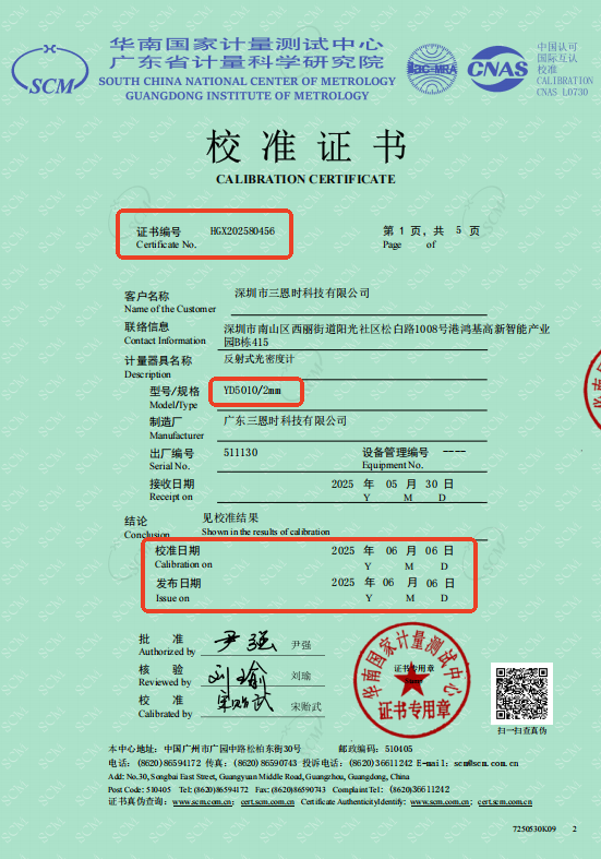 JJF1492-2014是行業通用的密度儀校準規范。三恩時YD5010分光密度儀以此為標準,確保儀器出廠數據均可溯源、精準可靠,助力印刷品品質升級,為您樹立行業權威標桿。