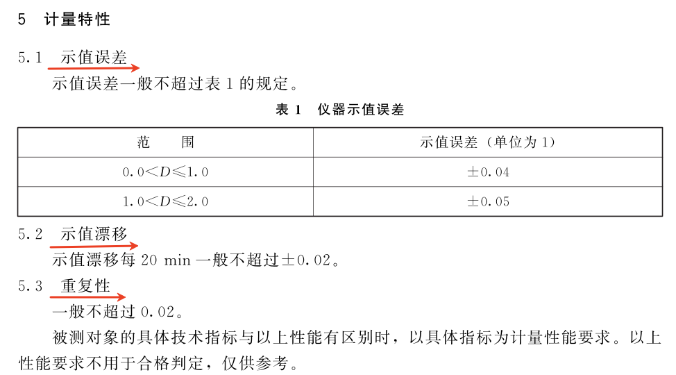《JJF1492-2014 反射式光密度計校準規范》是密度儀校準的核心技術規范。它明確了校準方法、設備要求和結果判定標準,確保每臺密度儀的測量數據可溯源性。計量特性要求如下: