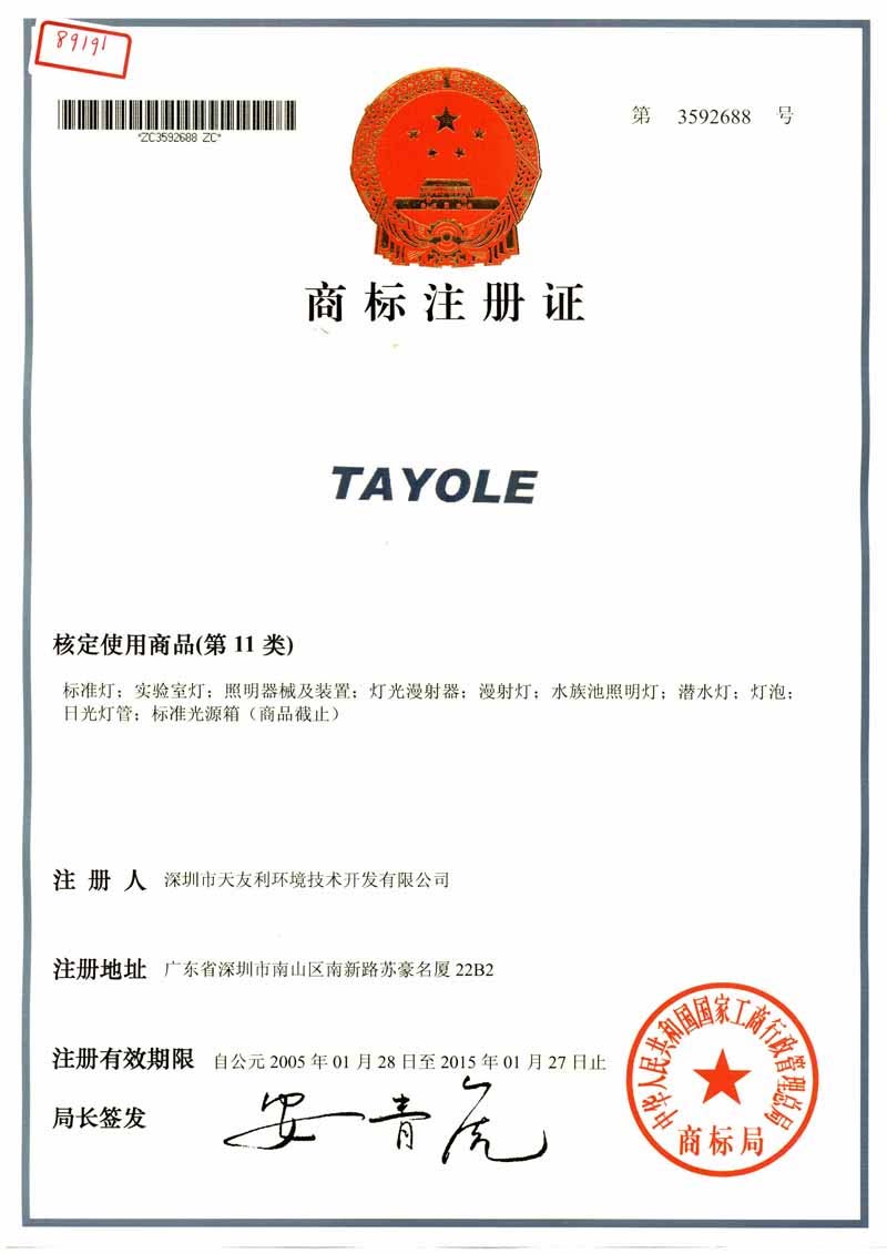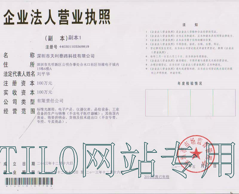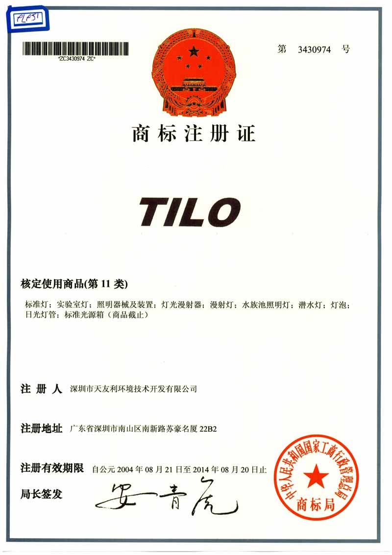 深圳市天友利標(biāo)準(zhǔn)光源有限公司、深圳市天利泰路科技有限公司(生產(chǎn)廠家)成立于1998年12月30日,先后注冊了商標(biāo):TILO、TAYOLE和天友利等,并在香港也成立了公司:卡羅卡超香港有限公司。