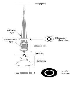 1. 環(huán)形光闌(annular diaphragm) 位于光源與聚光器之間,作用是使透過聚光器的光線形成空心光錐,焦聚到標本上。