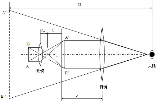 由上式知,透鏡的焦距越短,放大 鏡的放大倍數(shù)越大。一般采用的放大 鏡焦距在10~100mm范圍內(nèi),因而放大倍數(shù)在2.5~25倍之間。進(jìn)一步提高放大倍數(shù),將會(huì)由于透鏡焦距縮短和表面曲率過分增大而使形成的映象變得模糊不清。為了得到更高的放大倍數(shù),就要采用顯微鏡,顯微鏡可以使放大倍數(shù)達(dá)到1500~2000倍。