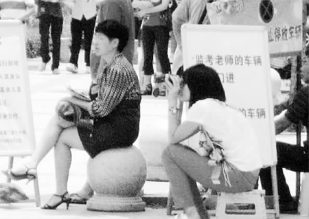 上午11點(diǎn)半,女孩放下手中的望遠(yuǎn)鏡,收起小板凳,“我看到她們出來了,這就去迎接?!闭f罷,女孩留下一個(gè)急匆匆的背影,消失在人群中。