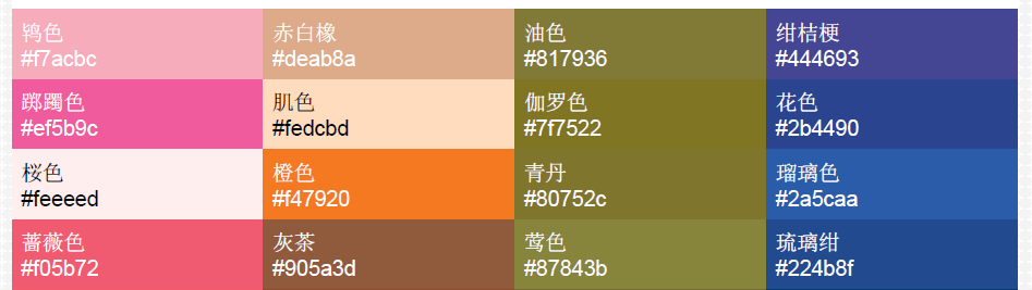 顏色名稱對照表 中文顏色名稱顏色對照表 顏色和名稱對照表(二)