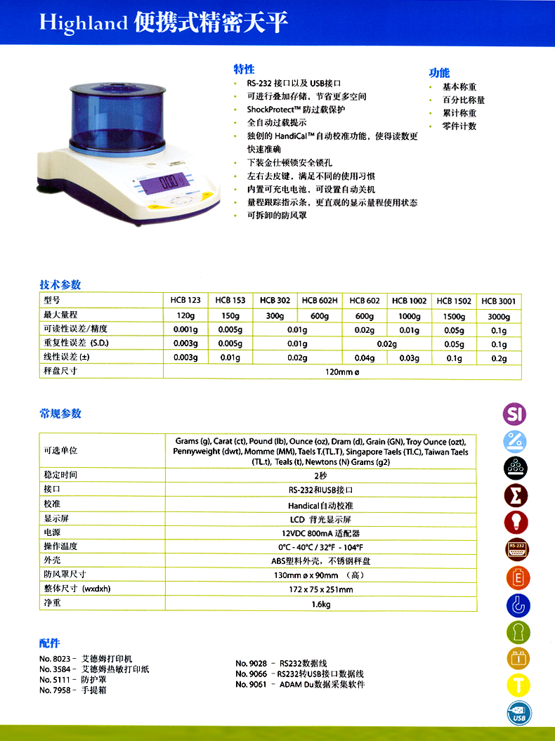 英國ADAM艾德姆1/1000g高精度便攜式電子天平HCB123,性價比更高的電子天平。