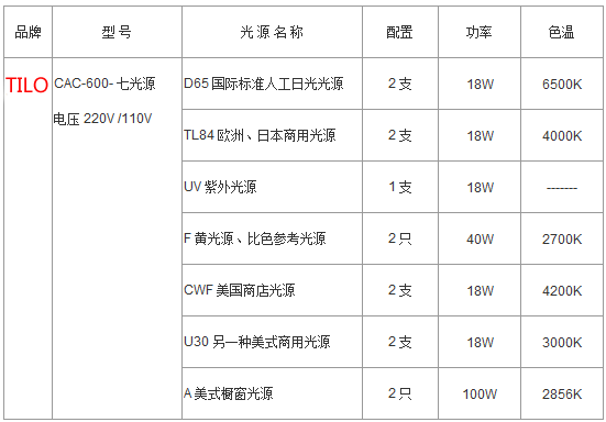 標(biāo)準(zhǔn)光源對(duì)色燈箱參數(shù):