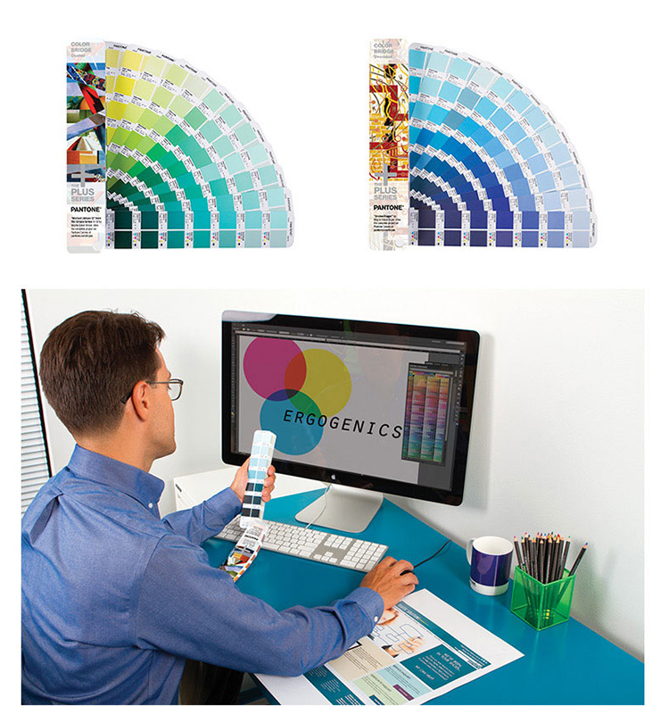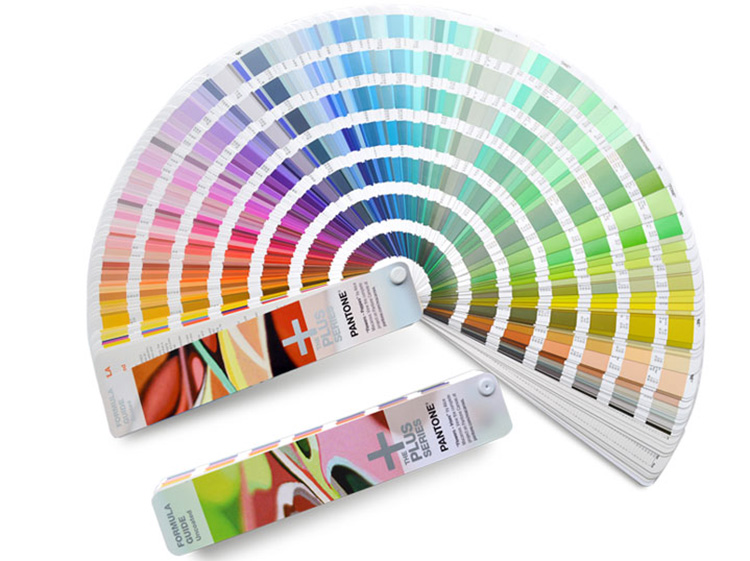 1,755種專色配方指南,1,755帶有專色的sRGB和HTML數值以及橋轉CMYK的色彩,2,868種CMYK色彩選擇,展示網屏色調百分比,便攜式扇形格式,所有色彩包括光面銅版紙及膠版紙