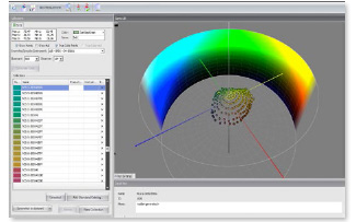 允許在 CIELAB 色彩空間中查看色彩配方、色彩目錄和標準色彩系列。可顯示真實的色彩外殼和色彩點,能讓用戶追蹤效果顏料,明確并減少類似系列產品的數量,辨別色彩空間的差異。
