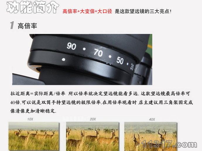 40倍望遠鏡 Bushnell 博士能B1090X 雙筒望遠鏡 升級版 變倍+高倍