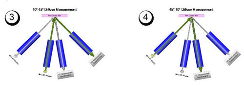 為了測量樣品的漫反射比,使用10度光源照亮樣品,并用45度測量光譜儀捕獲與正常情況相對的45度散射光。