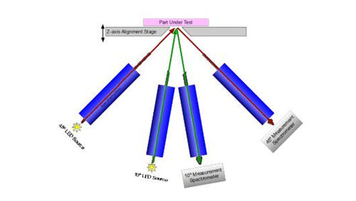 為了測量光滑光亮表面的直接鏡面反射,fd-ma1045il依次用10度LED光源照明,用10度測量光譜儀捕捉,然后用45度LED光源照明,用45度測量光譜捕捉。儀表。使用三級測量分光計進一步補償這些測量值,以校正光照的微小變化。
